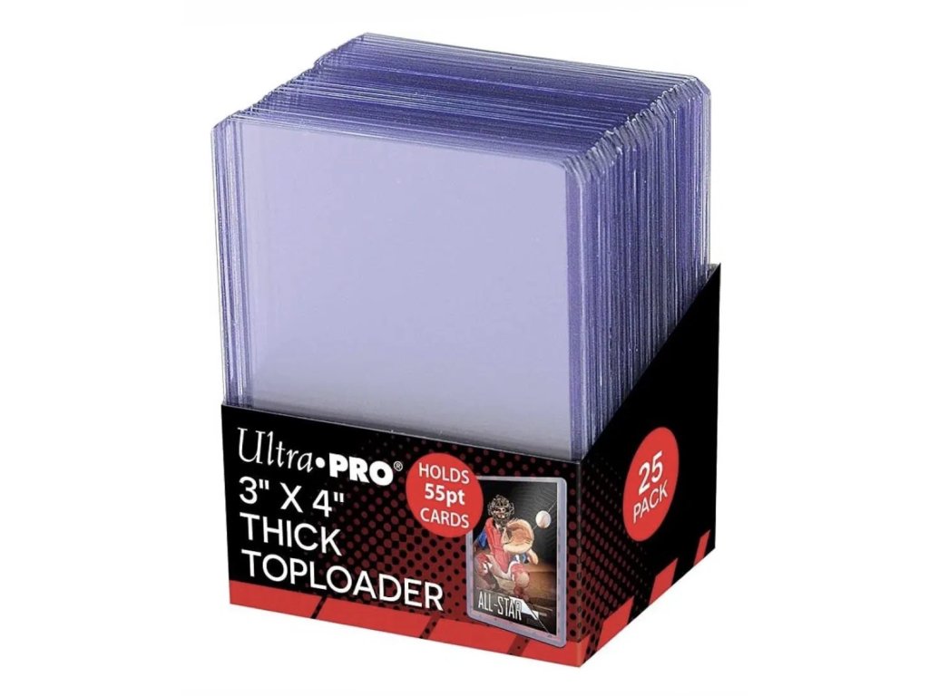 Toploader je tvrdšie plastové puzdro, ktoré spoľahlivo ochráni vaše karty počas prepravy poštou alebo do neho môžete uložiť svoje najcennejšie kúsky. Tento typ obalu nie je vhodný na hru ani na uloženie do albumu štandardnej veľkosti. Je väčší ako štandardný obal.
